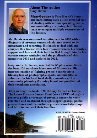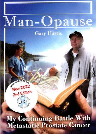 Man-Opause My Continuing Battle With Metastatic Prostate Cancer 3rd Edition is available free of charge. Your financial gift to the Lakes Prostate Cancer Fund is appreciated. Also available online from Amazon & Barnes & Noble.com.